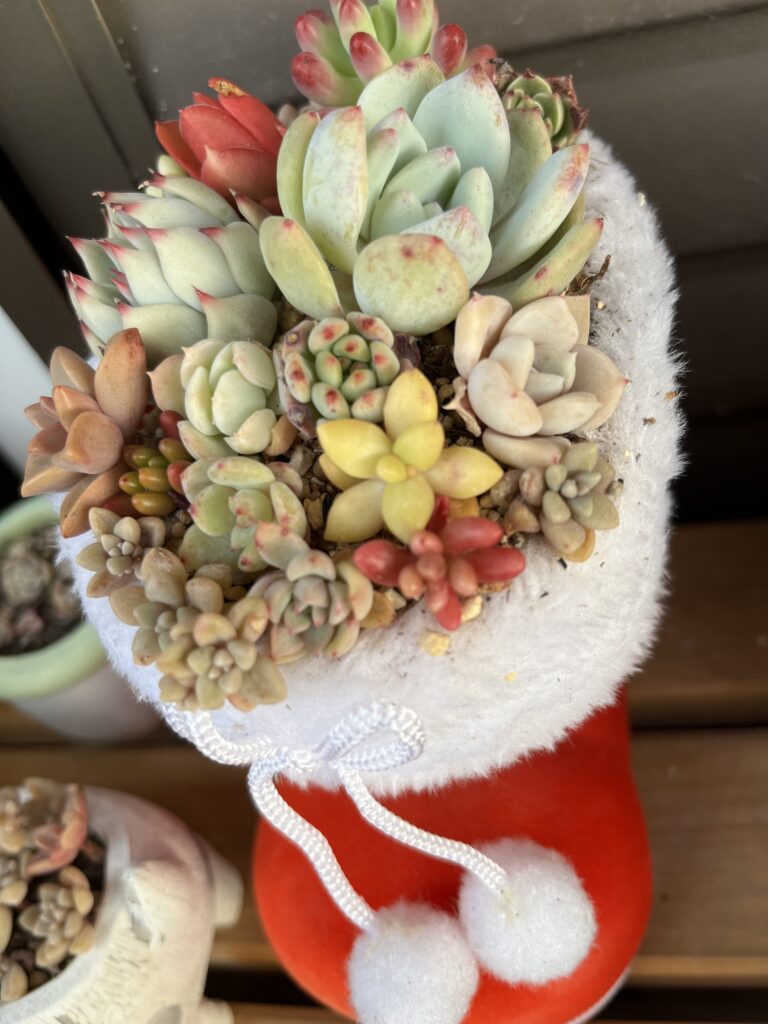 去年のクリスマスブーツ寄せ植え
